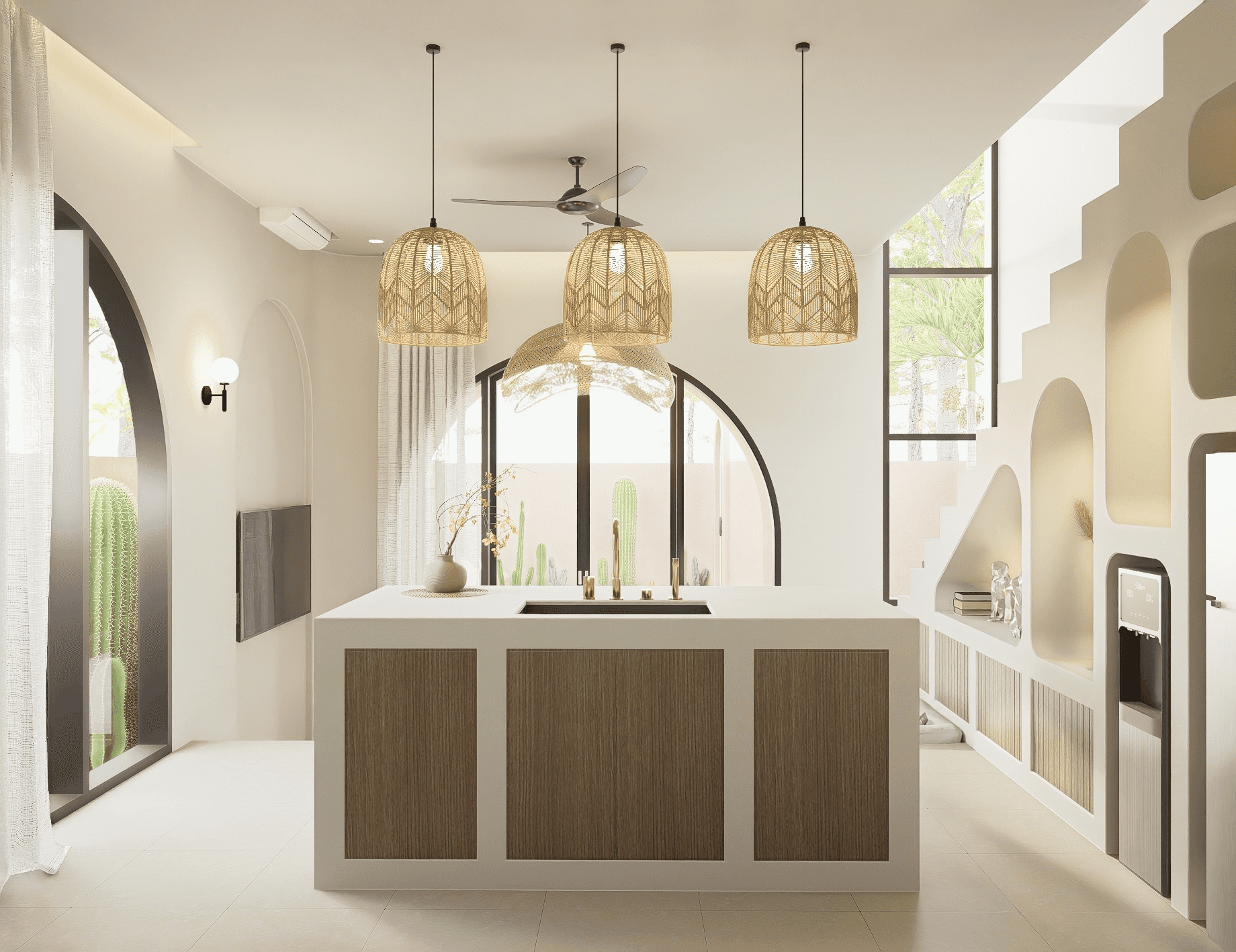 • Desert-inspired styling with natural materials